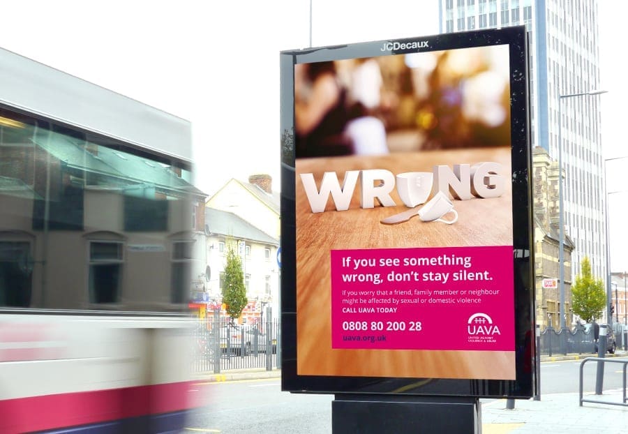 We worked in partnership with United Against Violence and Abuse (UAVA) to develop the Wrong Campaign, aimed at promoting awareness of and preventing domestic and sexual abuse. The campaign used striking typographic design, incorporating broken objects into the word “WRONG” – avoiding cliche imagery and instead focusing on subtle yet impactful visuals to encourage deeper engagement. The campaign’s success led to Leicestershire Police commissioning a Christmas variation to raise awareness during a high-risk period for domestic abuse.