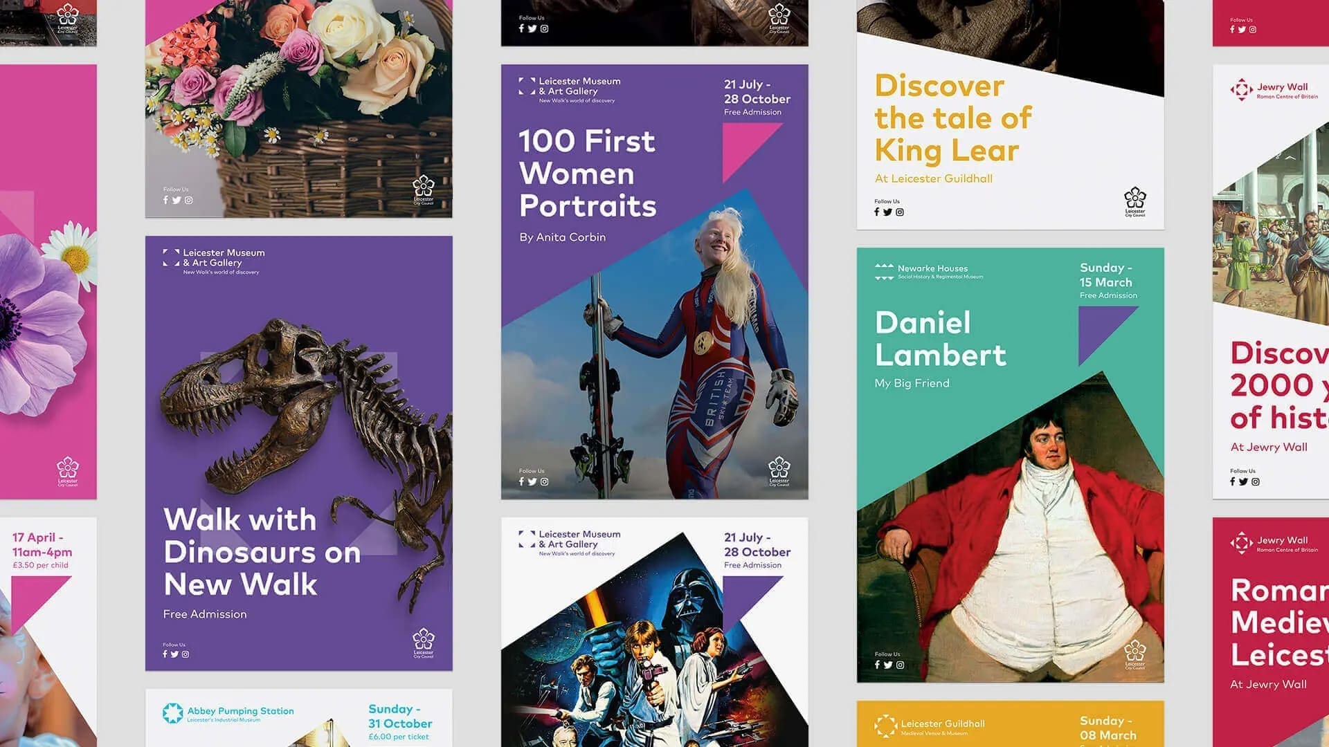 Leicester City Council’s museums service appointed Arch Creative to design a new branding approach for Leicester Museums & Galleries. The goal was to create a unified identity that reflected the diversity and richness of the city’s cultural heritage, from world-class historical collections to vibrant contemporary exhibitions.