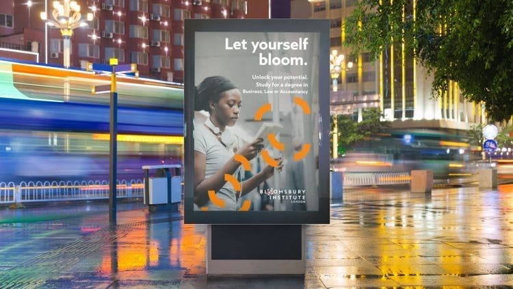 The chosen creative treatment which features a flower design, was based on the concept of growth and development. At the heart of Bloomsbury Institute is a very caring and supportive culture, helping their students to grow personally as well as academically. The flower symbolises this perfectly, and also had the added connotations of ‘blooming’ which fitted in nicely with the new name.