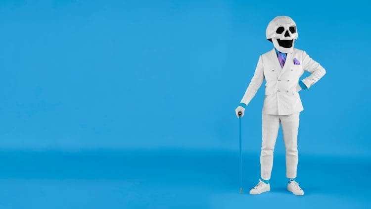 We presented a 3D-render version of Skull Man to DeadHappy, and then took our concept and organised a week-long photoshoot to capture the character. Collaborating with seasoned photographers and designers, we developed a solid sense of who Skull Man is through a series of humorous images. We shot at a large, dedicated local studio, which gave us the scope to supply an almost infinite array of props for our skeletal friend.