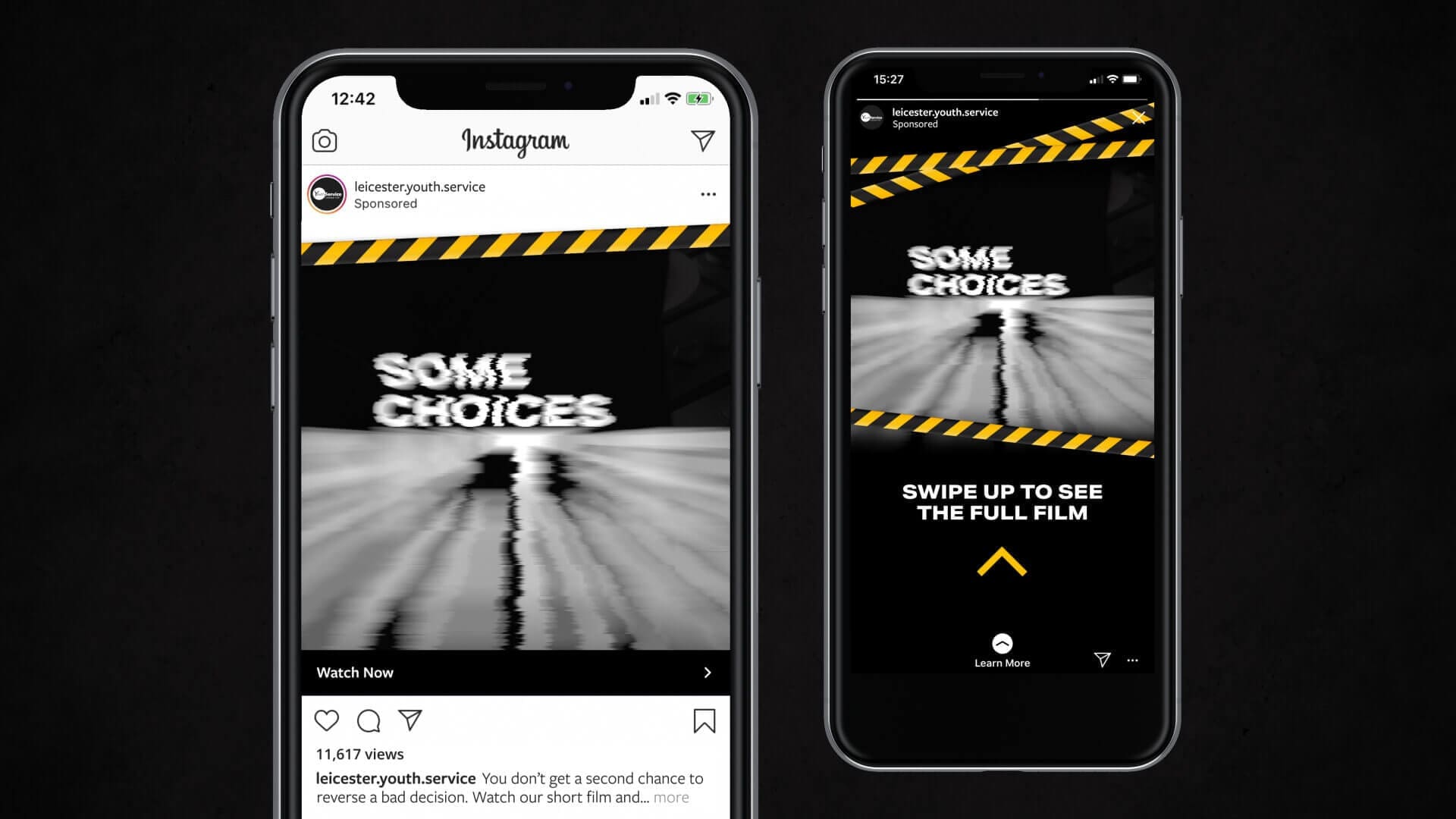 The video was promoted with a paid Instagram campaign. We created a highly impactful teaser video for the short-film. This combined clever editing and music selection to really engage the target audience with an advert that created tension and intrigue.